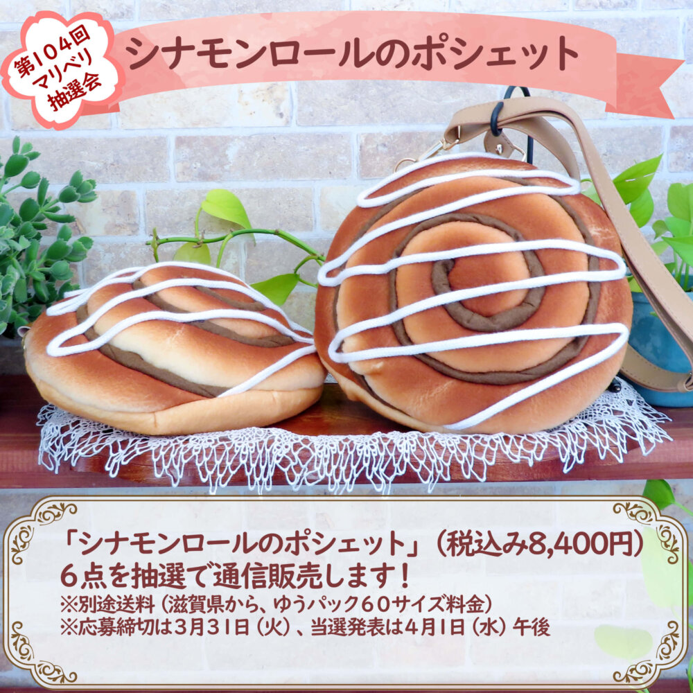 ニュース 更新情報 26.04.01【商品】シナモンロールのポシェット 26.04.01【販売】【第104回マリベリ抽選会】シナモンロールのポシェット抽選会当選者発表 26.03.28【イベント予定】🌸次回 2026年5月5日【名古屋】クリエイターズマーケットに参加します 26.03.28【販売】【第104回マリベリ抽選会】シナモンロールのポシェット抽選会 26.03.14【販売】大阪アート&てづくりバザールvol.51のお品書きと整理券希望者を募集しています ピックアップ 26.04.01【販売】【第104回マリベリ抽選会】シナモンロールのポシェット抽選会当選者発表 26.03.28【イベント予定】🌸次回 2026年5月5日【名古屋】クリエイターズマーケットに参加します 26.02.03【販売】【第102回マリベリ抽選会】冬のカニさんパン祭り~ボディバッグ 抽選会当選者発表 22.06.26【日常】Youtubeもヨチヨチやってます 20.02.29【プレス】映画「劇場版カフカの東京絶望日記」パンフレットでメロンパンかめさんが出演しました 18.11.18【制作】祝・LINEスタンプ新発売! 日記カテゴリ 日常の出来事、イベント参加の記録など、気のままに記録。 【販売】 26.04.01 【第104回マリベリ抽選会】シナモンロールのポシェット抽選会当選者発表 【販売】 26.03.28 【第104回マリベリ抽選会】シナモンロールのポシェット抽選会 【販売】 26.03.14 大阪アート&てづくりバザールvol.51のお品書きと整理券希望者を募集しています 【販売】 26.03.08 大阪アート&てづくりバザールvol.51出展します 【販売】 26.02.03 【第102回マリベリ抽選会】冬のカニさんパン祭り~ボディバッグ 抽選会当選者発表 【販売】 26.01.30 【第102回マリベリ抽選会】冬のカニさんパン祭り~ボディバッグ